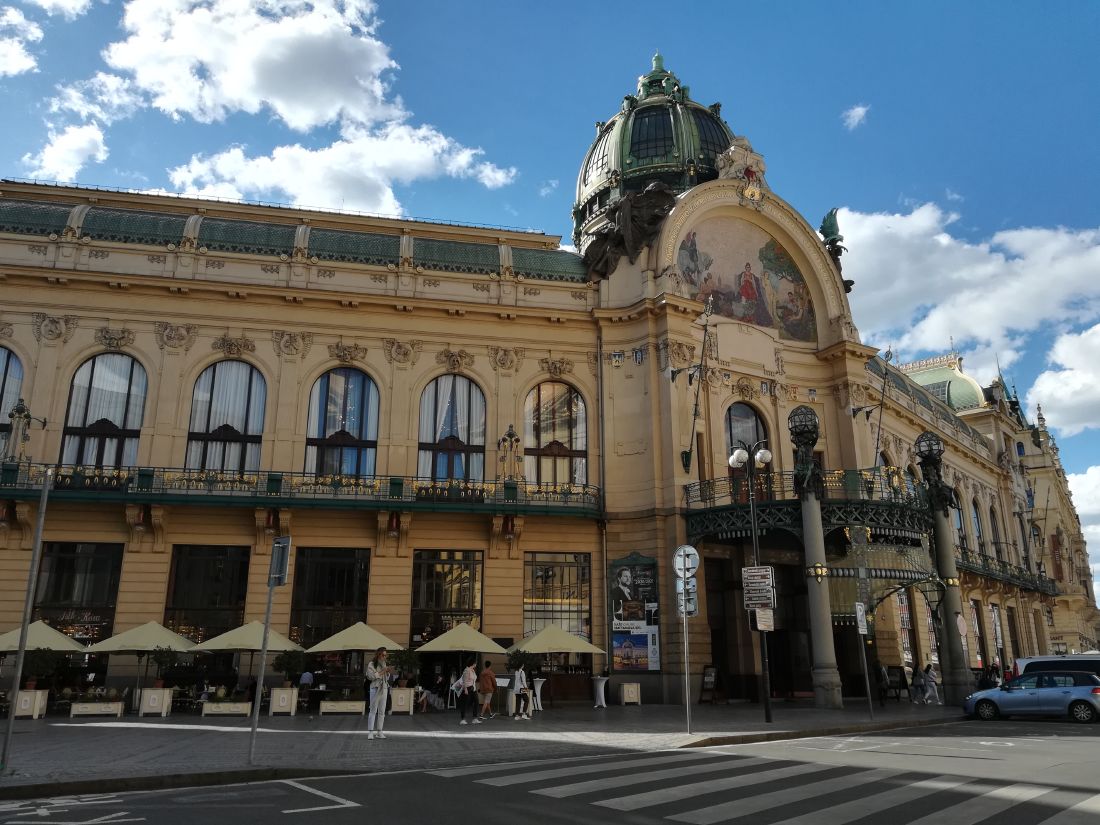 Metro linea B (amarilla) ,estación Náměstí Republiky. Delante de la Casa Municipal (Obecní dům)